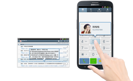 必须点击屏幕、打开邮件才能查看详细内容?Samsung GALAXY MEGA P729拥有Air View浮窗预览,您只需将手指靠近手机屏幕,无需触碰,即可快速方便地预览邮件。通过浮窗预览,您还可根据设定的联系人编号实现快速拨号,大大提高效率。扩大的屏幕将带给您与平板电脑同样舒适开阔的视觉体验。